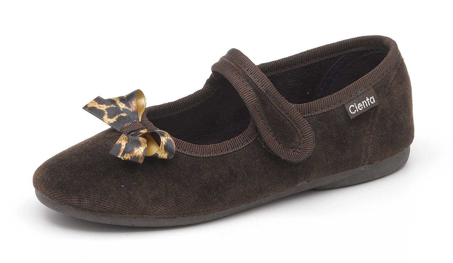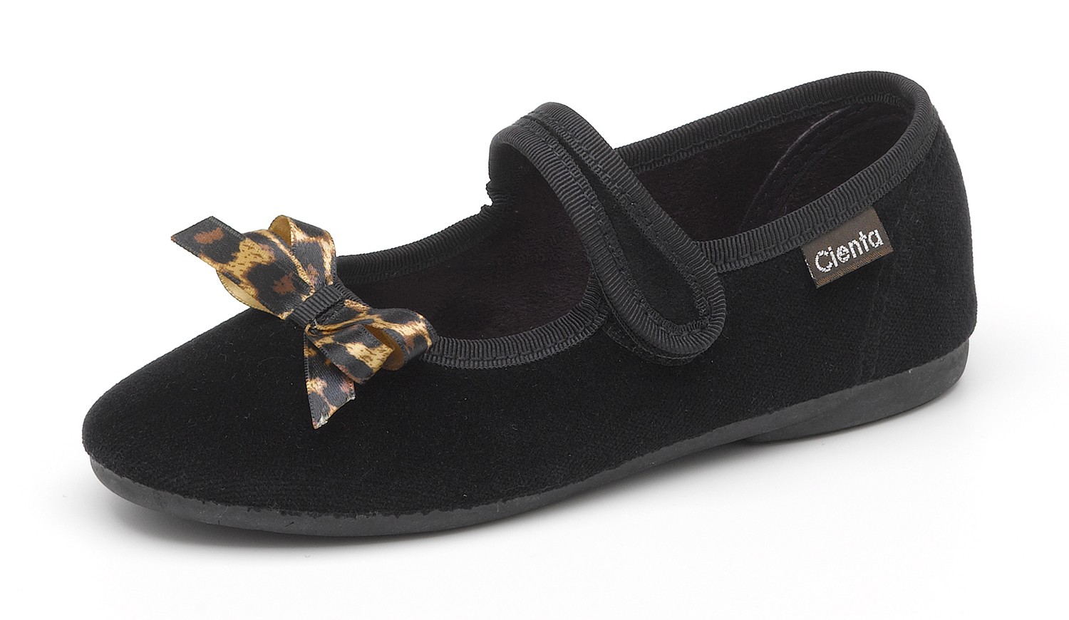 En Cienta somos expertos en la fabricación de calzado infantil, utilizando solo materias primas naturales para ofrecer un calzado ligero y adecuado a las necesidades de los más pequeños. Las bailarinas para niñas son un clásico que no pasa de moda. Inspirada en las clásicas bailarinas, la bailarina salon terciopelo de Cienta tiene un estilo actual que las hace perfectas para llevar con cualquier look gracias al lazo de estampado de leopardo. Hechas en algodón natural tiene una tira central para sujetar el pie y aportar un mayor agarre al caminar. La suela de la bailarina lisa es de caucho natural, lo que hace que sea flexible, antideslizante y muy cómoda, ¡Te encantarán!