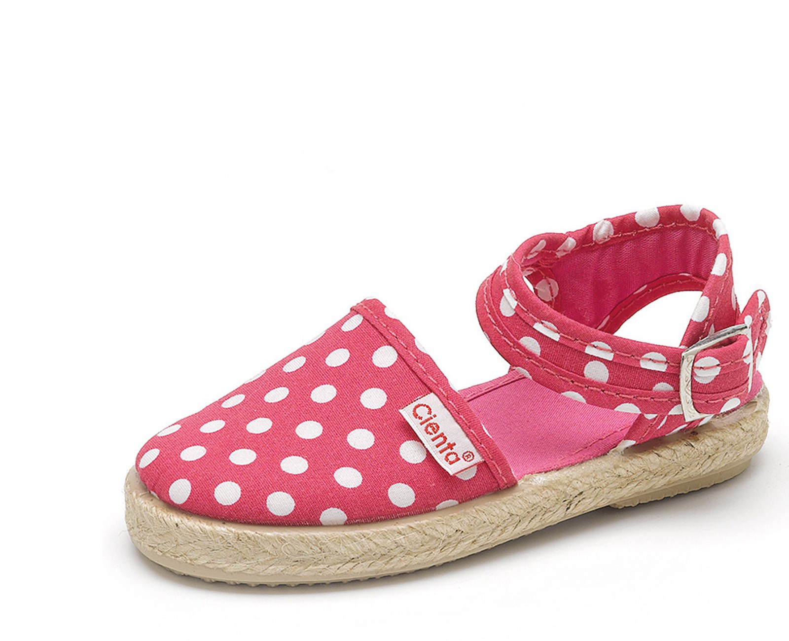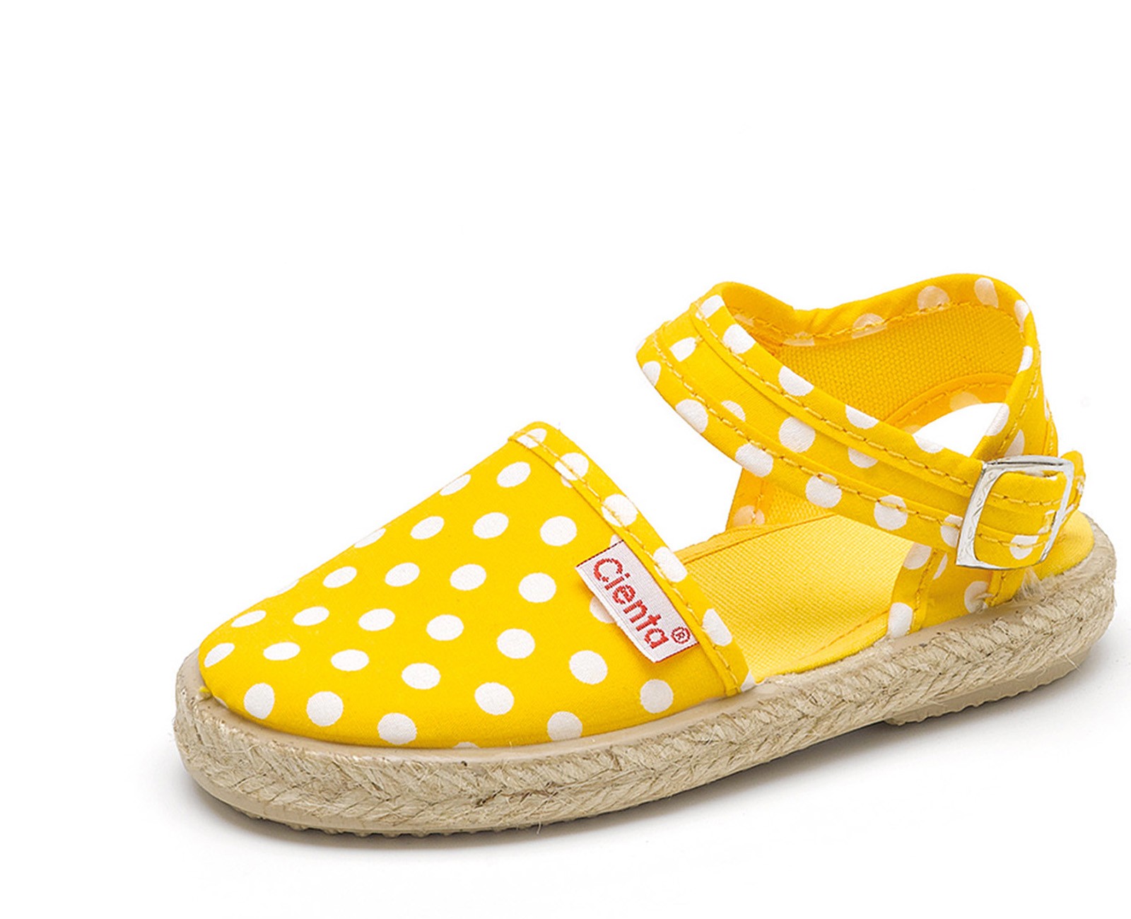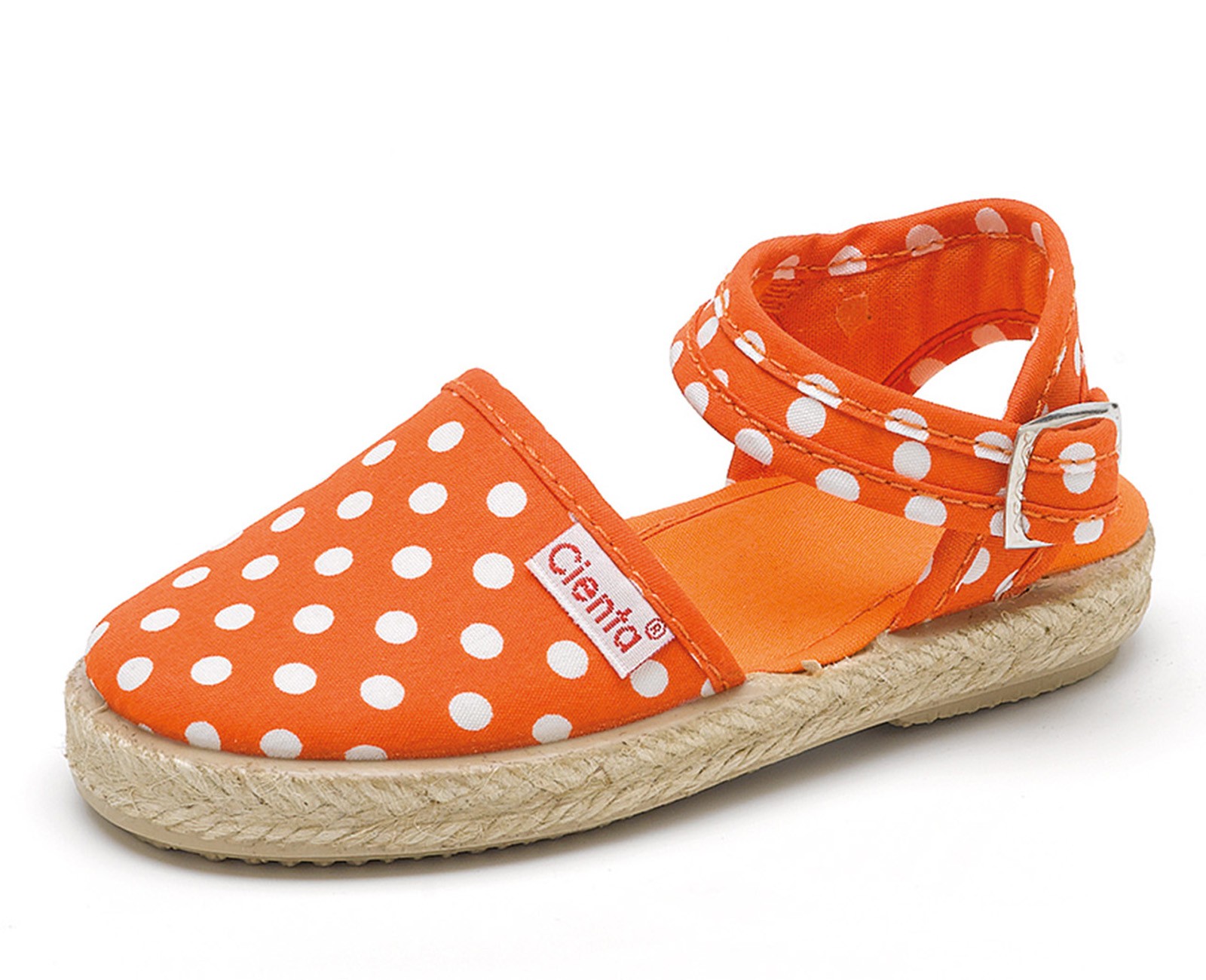 En Cienta llevamos desde 1982 dedicandonos a la fabricación de calzado vulcanizado de gama alta para los mas pequeños. Las valencianas para niñas son un básico en todo armario e ideales para primavera-verano. Diseñadas en algodón orgánico y con suela de yute y goma, este modelo de Cienta es fllexible y resistente. El cierre con hebilla hace que se adapten perfectamente a cualquier tipo de pie. La valenciana hebilla topos de Cienta es ideal para todo tipo de ocasiones y muy combinables con su print de lunares ¡Hazte ya con tus valencianas!